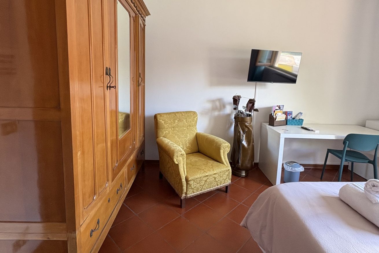 Subito fuori dalle mura cittadine e quindi dal centro storico di Lucca. La camera è silenziosa e con bagno privato (esterno alla camera ! ).