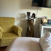 E' fornita di un comò e un armadio.
